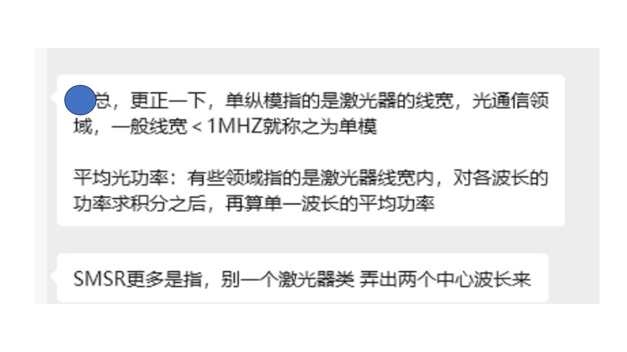Y11T272 回复一个留言,关于激光器纵模、单模、平均光功率